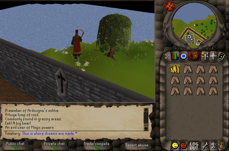 Anyway, about the dream I had, it was of this oddly specific spot behind the wall of Yanille near the willow tree in RS2. I wonder what the dream means?
